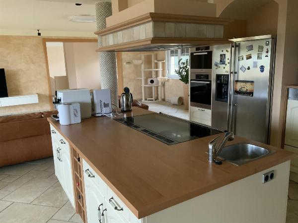 Mehrere Seiten würden nicht ausreichen um die umfangreiche und hochwertige Ausstattung aufzuzählen, z.B. moderne "autarke" Energieversorgung, Autoabstellplatz, Doppelgarage, offene Designküche mit Kücheninsel, Speisezimmer, offenes Wohnzimmer mit TV-Mediaanlage, Klimaanlage, Alarmanlage, Pelletsheizung und Wärmetauscher, mehrere Bäder und WC, Gästezimmer, Schlafzimmer, begehbare Garderoben, große Terrasse mit Grillplatz, großzügiger Keller mit Nebenräumen, Hauswirtschaftsraum, Poolvorbereitung, ...